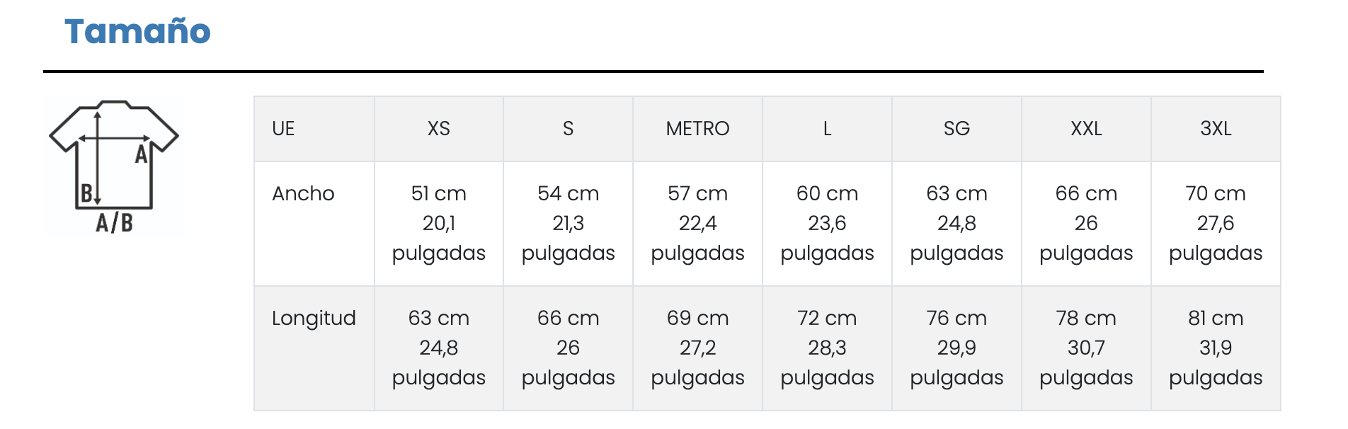 Talla sudadera sin cuello